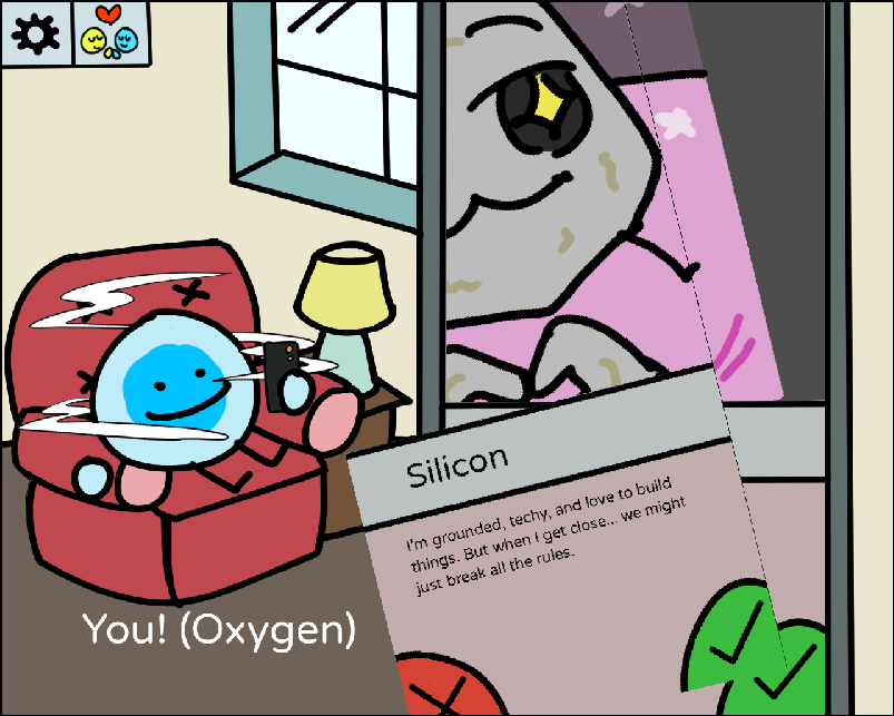 Alchemy Tinder is a game where you must join elements through a Tinder interface to form compounds. Think of it as "linking elements" where elements must mix, react, and combine.